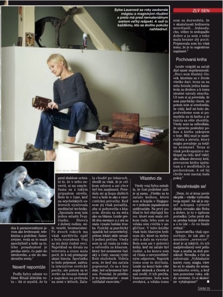 „Ač původně právnička, uspěla Sylva Lauerová jako podnikatelka s realitami. Našla se ale až při meditacích na Seychelských ostrovech. Vydává eroticky laděné romány a básně a tvrdí, že existuje rituál, který milence spojí až do smrti.“
